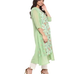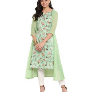 Look and feel beautiful in this uniquely designed Botanical Print kurta from Anasya. It is made of Poly Crepe and comes in an attractive Green color. It features 3/4 Sleeve, Round Neck, A-line and it is a Calf Length kurta that is suitable for Casual occasions.