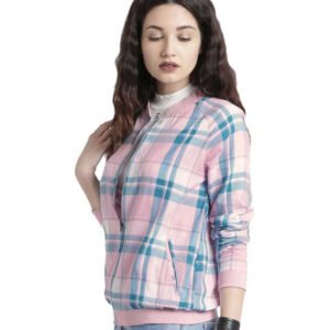 [vc_row][vc_column][vc_column_text]Pink and blue checked bomber, has a stand collar, 2 pockets, zip closure, long sleeves, straight hem. You’ll love the warmth and style of this pink jacket made by Roadster. Stay warm while heading out to the city with friends this weekend in this piece.[/vc_column_text][/vc_column][/vc_row]