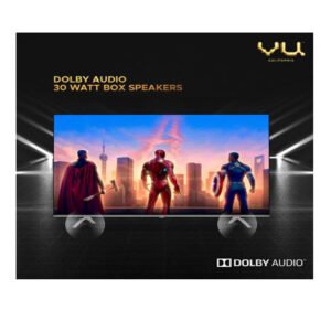 [vc_row][vc_column width=”1/2″][kapee_heading title=”Description”][vc_column_text]This Vu TV is here to mesmerise you with a cinematic experience in the comfort of your home. The 30 W Box Speakers of this TV with Dolby Audio, help you enjoy every sound and clear vocals so that you can enjoy an immersive experience. The Bezel-less Design ensures that you enjoy a larger than life experience while streaming movies, gaming, and more.[/vc_column_text][kapee_heading title=”Specifications”][vc_column_text]